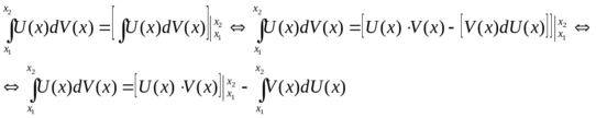 U=U(x), V=V(x), тогда ∫U(x)dV(x)=U(x)V(x)-∫V(x)dU(x)