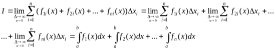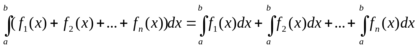 ∫[f1(x)+f2(x)+…+fn(x)]dx=∫f1(x)dx +∫f2(x)dx+…+∫fn(x)dx