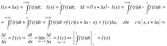 Из функции (1) следует, что I(x) является первообразной для подынтегральной функции f(x), т.к. I’(x)= f(x). Пусть F(x) – какая-то первообразная для подынтегральной функции, тогда I(x)=F(x)+c (2).