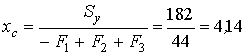 Ввиду симметрии сечения координату центра тяжести у c можно найти без вычислений, она равна половине вертикального размера сечения