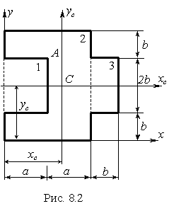 у c = 2 b = 4 см. Через найденный центр тяжести C проводим главные центральные оси х с и у с .