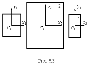 Так как ось х с и оси элементарных сечений х 1 , х 2 , х 3 совпадают, то: