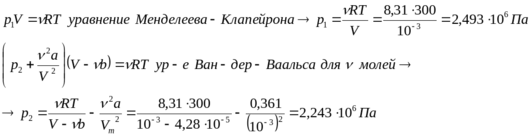 В сосуде вместимостью 0,3 л находится 1 моль углекислого газа при температуре 300К. Определить давление газа: 1) по уравнению Менделеева-Клайперона; 2) по уравнению Ван-дер-Вальса