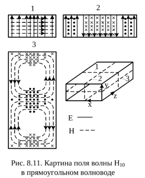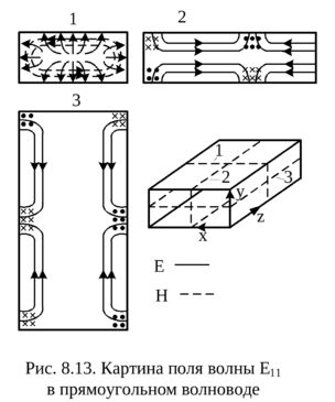 рафики этих зависимостей изображены на рис.8.10. Полная картина поля в поперечном сечении волновода представлена на рис.8.11.
