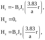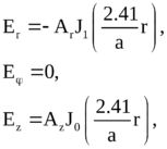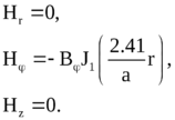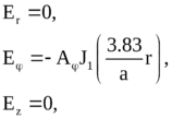 воспользуемся граничными условиями, согласно которым при r=a составляющие электрического поля Еφ и Еz равны 0. Тогда, как следует из (8.23),
