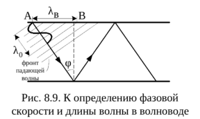 . За то же время вдоль волновода фронт переместился на расстояние АС, которое определяет длину волны в волноводе. Из треугольника АВС