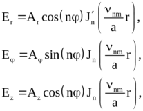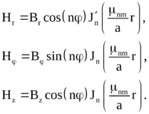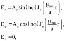 При этом индекс корня n соответствует числу целых волн стоячей волны, укладывающихся по окружности волновода, а индекс m – числу также целых волн стоячей волны, укладывающихся вдоль радиуса.