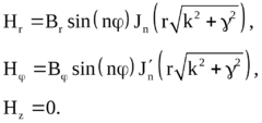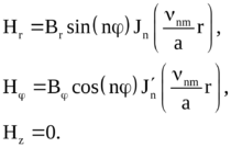 В круглом волноводе также возможны волны типа Н. Выражения для составляющих поля можно получить, используя принцип двойственности. В результате составляющие поля волны типа Н записываются в виде: