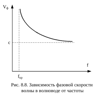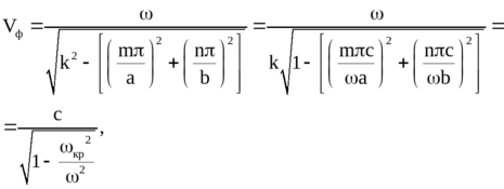 1.Фазовая скорость волны в волноводе зависит от частоты, т.е. имеет место частотная дисперсия.
