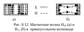 По аналогии с волной Н10 нетрудно построить картины волн более высокого уровня сложности – Н20 и Н11 (рис.8.12).