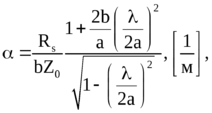 Изменение уровня мощности сигнала в осевом направлении волновода, как и напряженность поля, подчиняется экспоненциальному закону: