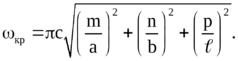 Как и волновод, объемный резонатор имеет критическую час-тоту. Опуская математическую сторону вопроса, запишем общее выражение для критической частоты прямоугольного резонатора: