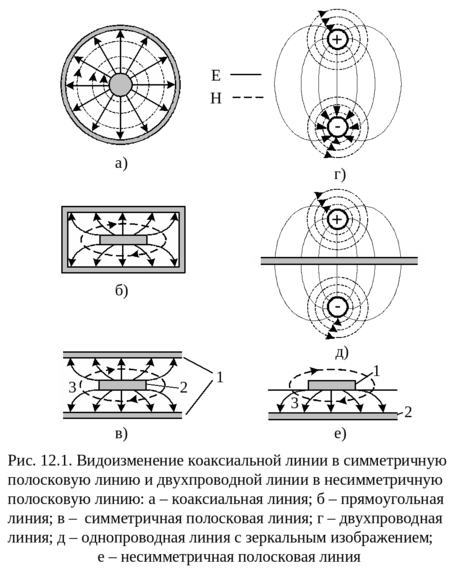 олосковую линию как сим-метричную, так и несимметричную можно представить как направляющую систему, в которой основная часть передаваемого потока мощности сосредоточена в однородном диэлектрике бесконечных размеров с малыми потерями. В полосковой линии, как в проводных и коаксиальных линиях распространяются поперечные волны типа ТЕМ (Т).