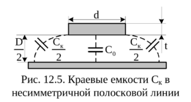 мкость несимметричной линии (рис. 12.5) можно определить по формуле для полоски бесконечно малой толщины над бесконечной заземленной пластиной: