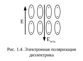 од действием внешнего электрического поля электрические диполи, подобно магнитной стрелке компаса, ориентируются вдоль силовых линий поля (рис.1.4). В результате этого в веществе возникает встречное электрическое поле, и суммарное поле уменьшается, а диэлектрическая проницаемость соответственно возрастает: