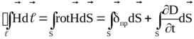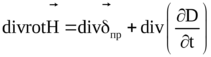 Таким образом, полный ток в цепи представляет собой сумму тока проводимости и тока смещения, который замыкает электрическую цепь. С учетом сказанного, окончательная форма первого уравнения Максвелла принимает вид: