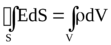 Здесь операция div переводится как расходимость вектора Е из объема, ограниченного поверхностью S.