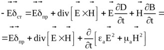 – мощность, сосредоточенная в объеме V, которая расходуется на преобразование электрической энергии в магнитную и наоборот. Здесь