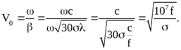называется постоянной распространения. Соответственно, фазовая скорость волны в среде с конечной проводимостью и длина волны определяются по формулам: