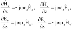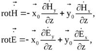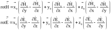 и их взаимную ориентацию во времени и пространстве. Для этого запишем 1 и 2 уравнения Максвелла, используя выражение для ротора в декартовых координатах:
