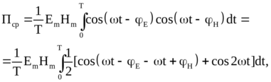 Определим среднее по времени значение вектора Пойнтинга. По определению