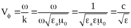 В диэлектрике, не обладающем магнитными свойствами, фазовая скорость волны равна