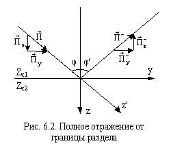 Исследуем свойства волны в случае полного отражения от границы раздела. Вначале для удобства изменим систему координат. Пусть волна распространяется вдоль направления z' (рис.6.2). Тогда