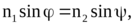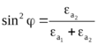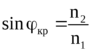 Критический угол падения на границу раздела двух диэлектриков, при котором отсутствует преломленная волна, можно определить из закона Снеллиуса, положив угол преломления ψ равным 90o: