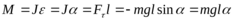 • Момент возвращающей силы в случае если маятник отклонен из положения равновесия на некоторый угол