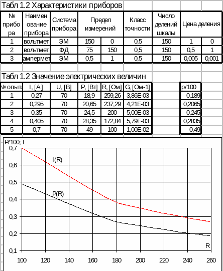 характеристики всех приборов, с которыми проводится эксперимент записать в таблицу 1.1;