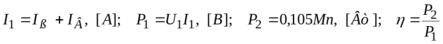 г) значение питающего напряжения электродвигателя устанавливают равным его номинальному значению U=220 В, установку величины питающего напряжения производят кнопками «↓» и «↑» на панели «Нагрузочные устройства» при предварительно нажатой кнопке «Вкл» на панели «Мишины постоянного тока».