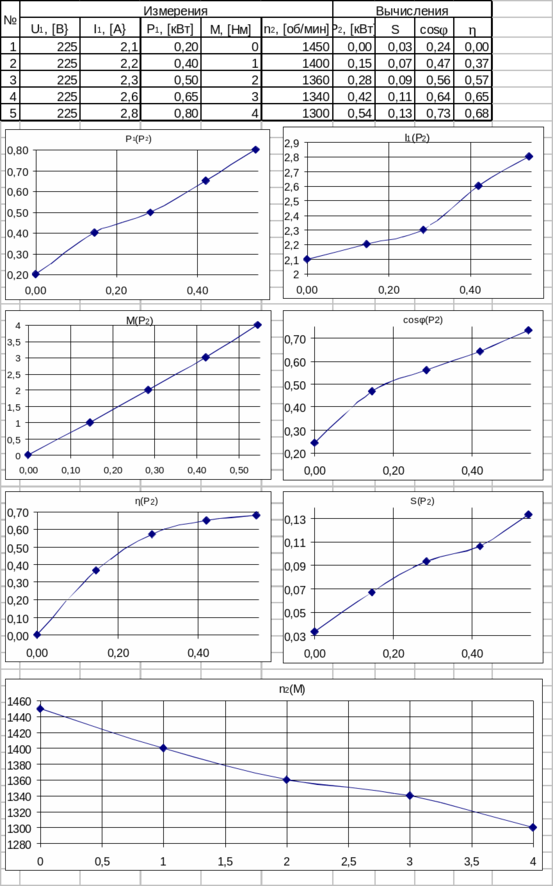 1. По данным измерений и вычислений построить механическую характеристику и рабочие характеристики двигателя