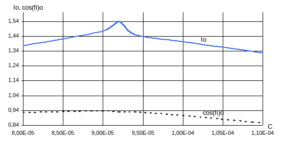 Изменяя емкость конденсаторов от 0 до 80-100 [мкФ], определит точку резонанса напряжений по максимуму тока и мощности.
