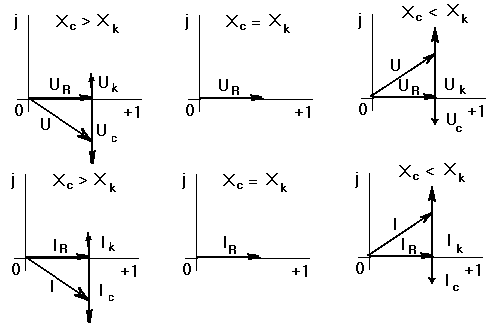 При равенстве токов на конденсаторе (емкостном элементе ) и катушке (индуктивном элементе);