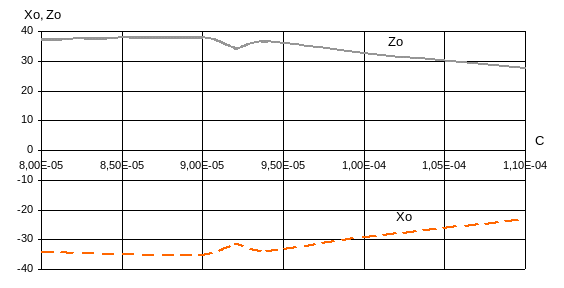3 опыт С=80-100 [мкФ] (точка резонанса);