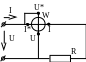 3) Ваттметр (W) – служит для измерения электрической мощности P(Вт). Включается по сложной схеме, так как имеет две обмотки: I*- I – амперметровая обмотка (токовая) служит для измерения тока и включается в цепь последовательно, U*- U – вольтметровая обмотка (напряжения). Служит для измерения напряжения и включается в цепь параллельно. I*, U* - генераторные зажимы ваттметра, включаются со стороны источника.