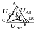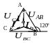 1. Строится диаграмма линейных напряжений системы, которая принимается симметричной.