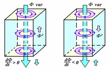 По закону электромагнитной индукции при всяком изменении магнитного потока в окружающем объеме наводятся вихревые ЭДС, величина которых будет пропорциональна скорости изменения магнитного потока: