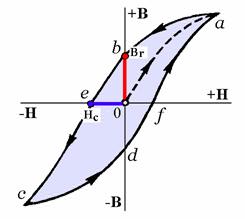 Замкнутая кривая намагничивания ферромагнетика abecdfa , графически представляющая в координатах В(Н) один цикл перемагничивания, называется петля гистерезиса.