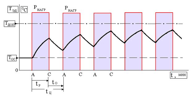 Рис. 5. Нагрузочная диаграмма электродвигателя при повторно-кратковременном режиме работы