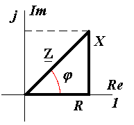 = R + j X и на комплексной плоскости в виде прямоугольного треугольника сопротивлений: