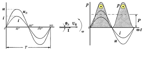 В резистивной цепи коэффициент мощности Cos φ R = 1, поэтому среднее значение электрической мощности за период или активная мощность в резистивной цепи равна полной мощности: Р = P cp = I U Cos φ R = I U = S - резистивная цепь потребляет от сети только активную мощность P = S.
