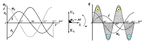Индуктивный элемент L [Гн] (идеальная катушка) включен в сеть переменного тока i = Im Sin ωt на напряжение uL и участвует в обмене реактивной энергией Q L [ВАр] с питающей сетью.