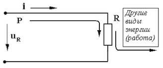 Резистивный элемент R , обладающий активным сопротивлением R [Ом], включен в сеть переменного тока i = Im Sin ωt на напряжение uR и потребляет от питающей сети некоторую мощность Р [Вт], которая преобразуется в другие виды энергии, т.е. в некоторую работу.