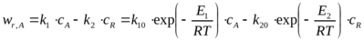 Проанализируем условия обеспечения оптимального температурного режима обратимых реакций на примере обратимой реакции первого порядка А → R. Скорость такой реакции