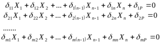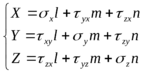 , где каждое число представляет собой значение σx, τyx,… в соответствии с расположением коэффициентов в трёх уравнениях: