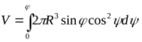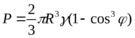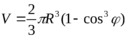 Нормальным коническим сечением с углом 2φ при вершине отсекаем нижнюю часть сферической оболочки и составляем для неё уравнение равновесия, где Р – равнодействующая сила давления жидкости. Сила Р будет равно весу жидкости в объёме, расположенном выше отсечённой части оболочки. Введём вспомогательный угол ψ и определим объём жидкости, расположенной выше отсечённой част оболочки: