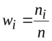 - его частота («вес» значения признака). Сумма всех частот значений признака равна объему выборки:
