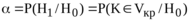 , то еще следует указать область маловероятных значений, попадание в которую статистики