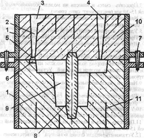 - число разъемов делать наименьшим, а поверхности разъемов плоскими для обеспечения удобства сборки формы;
